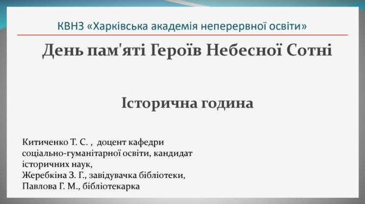 17 лютого 2023 року відкрито доступ до історичної години «День пам’яті Героїв Небесної сотні» у межах реалізації ХАБу «Україна – моя Батьківщина» регіонального проєкту «Освітній технопарк Харківщини – 2030».
