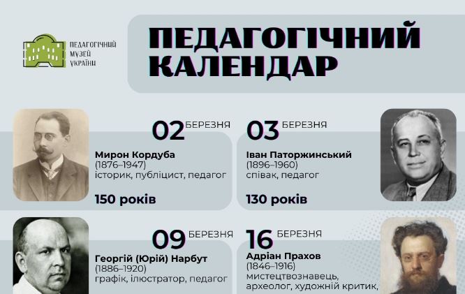 ✔ Педагогічний календар на березень 2026 р. (завантажити)