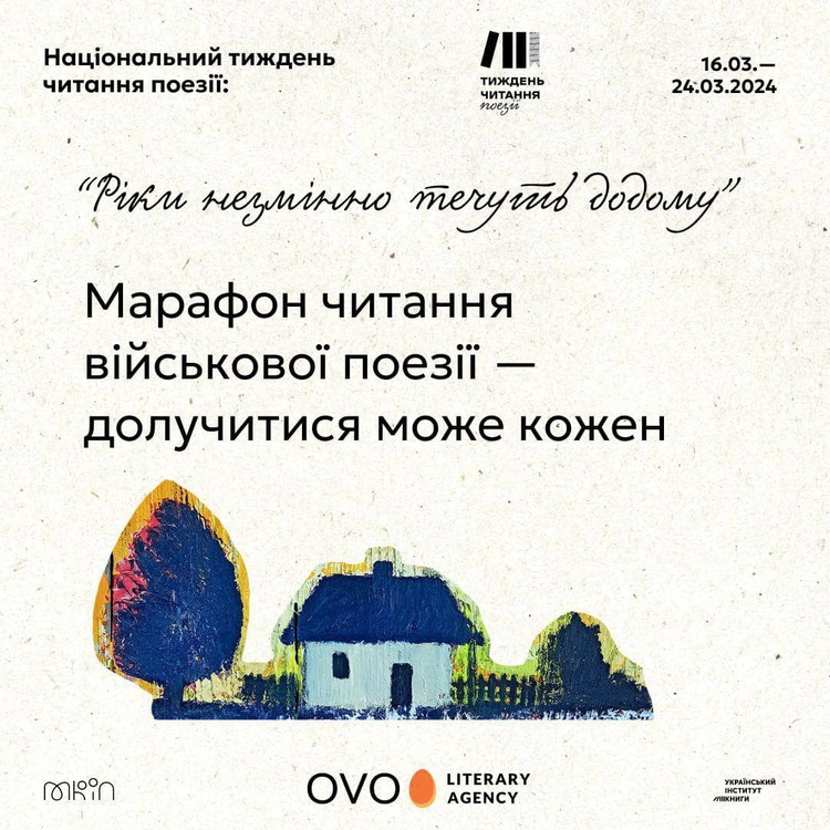 Цьогоріч Literary Agency OVO ІІ Літературна агенція OVO активно долучається до акції «Національний тиждень читання поезії» від Українського інституту книги та організовує марафон читання військової поезії, який триватиме з 16 до 24 березня. Координаторкою марафону стала українська поетка та культурна менеджерка Tetiana Vlasova.