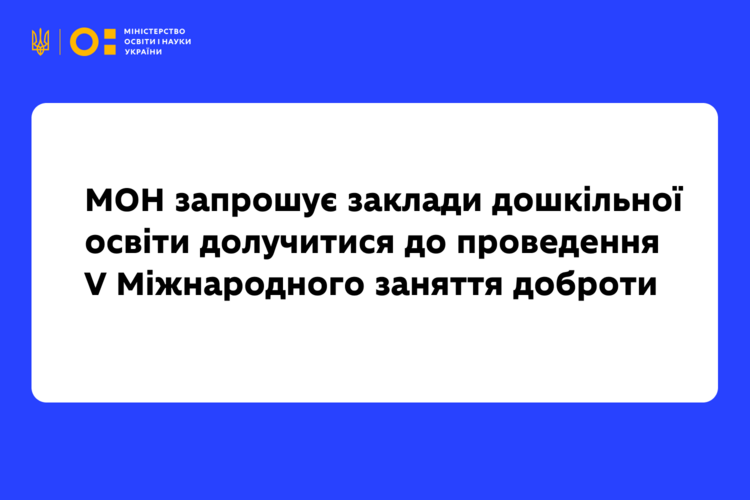 Міністерство освіти і науки України спільно із БО «БФ «Щаслива лапа» запрошує заклади дошкільної освіти долучитися до традиційного проведення V Міжнародного заняття доброти, щоб підтримати емоційне благополуччя дітей у непростий воєнний час, зменшити стрес та виховати доброзичливе ставлення до тварин.