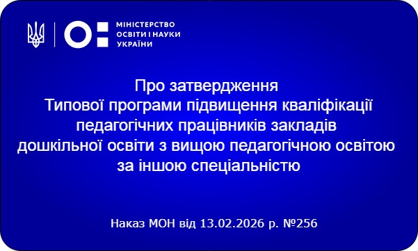 13 лютого 2026 року було підписано наказ МОН № 256, який дає старт новій системі підготовки кадрів для закладів дошкільної освіти (ЗДО). Рішення спрямоване на подолання відтоку фахівців та залучення проактивних осіб до роботи з дітьми раннього та дошкільного віку.