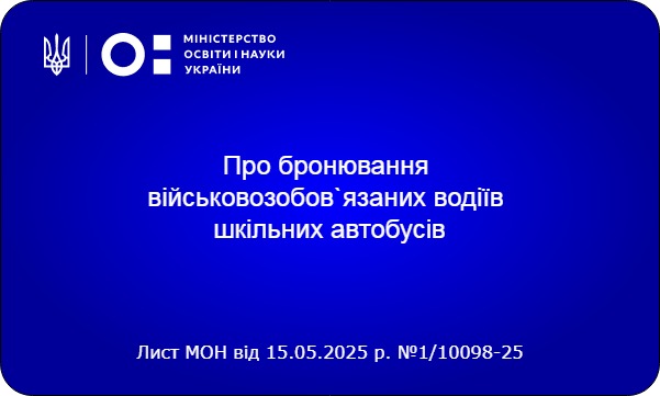 Лист МОН від 15.05.2025 р. №1/10098-25 "Про бронювання військовозобов`язаних водіїв шкільних автобусів"