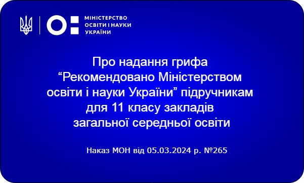 Міністерством освти і науки надано грифи підручникам для 11 класів закладів загальної середньої освіти.