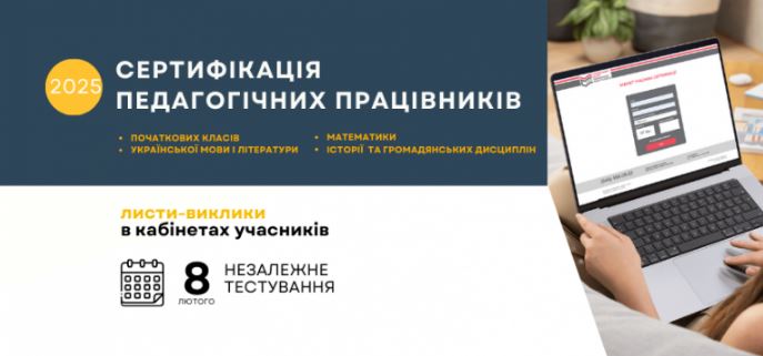 Сьогодні, 28 січня, для чотирьох категорій учасників сертифікації, а саме вчителів початкових класів, математики, української мови і літератури, історії та громадянських дисциплін, у кабінетах учасників сертифікації розміщено листи-виклики.