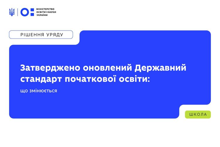 Кабмін затвердив оновлений Державний стандарт початкової освіти. Відповідно до нього учні й учениці перших класів розпочнуть навчання з 1 вересня 2028 року. Водночас стандарт уже зараз стане основою для розроблення нової Типової освітньої програми, модельних навчальних програм і підручників.